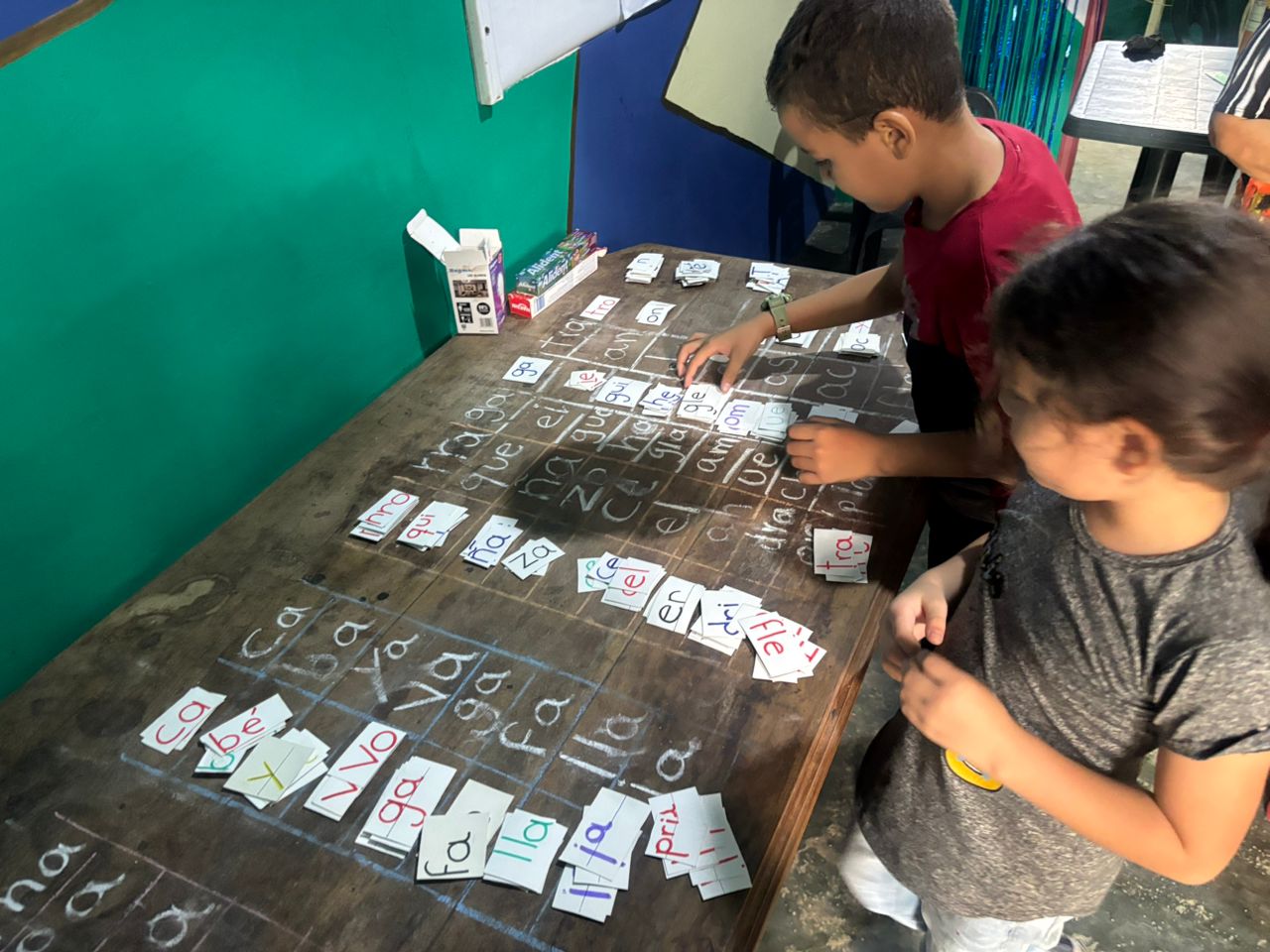 Su microescuela es un taller de creatividad permanente. Con semillas de tamarindo enseña a contar, con cartón reciclado y tizas convierte letras en un juego de formación de palabras, y en su jardín introduce nociones de botánica. Aunque su único apoyo tecnológico es un ventilador, su teléfono le permite investigar métodos nuevos y alimentar esa gran biblioteca personal de más de mil títulos.