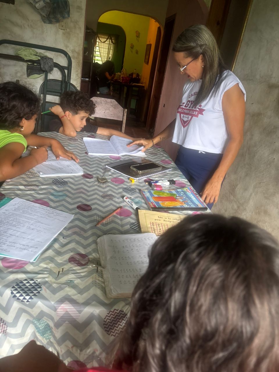 Ese espacio de aprendizaje tiene su sede en un corredor trasero de la casa de su madre, donde una pizarra, mesas y sillas conviven con la ilusión de enseñar. Nancy diseña planes individualizados y utiliza recursos didácticos pensados para cada estudiante, combinando actividades lúdicas con ejercicios de lectura y escritura que despiertan la curiosidad y fortalecen habilidades.